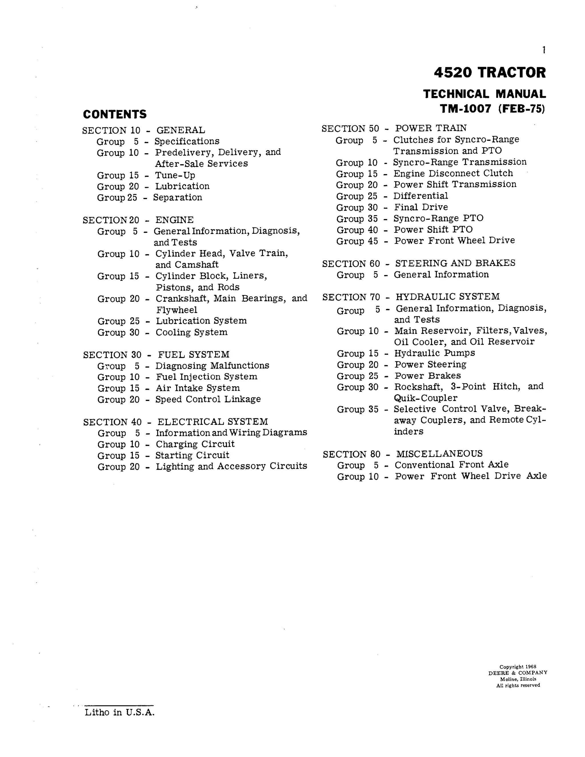 Our experienced and friendly sales staff are available to help with any of your John Deere 4520 tractor parts and engine parts needs. 20 ENGINE AG 30 FUEL AND AIR AG 40 ELECTRICAL AG 50 POWER TRAIN AG 60 STEERING AND BRAKES AG 70 HYDRAULICS. Elbow Fitting 13 3.