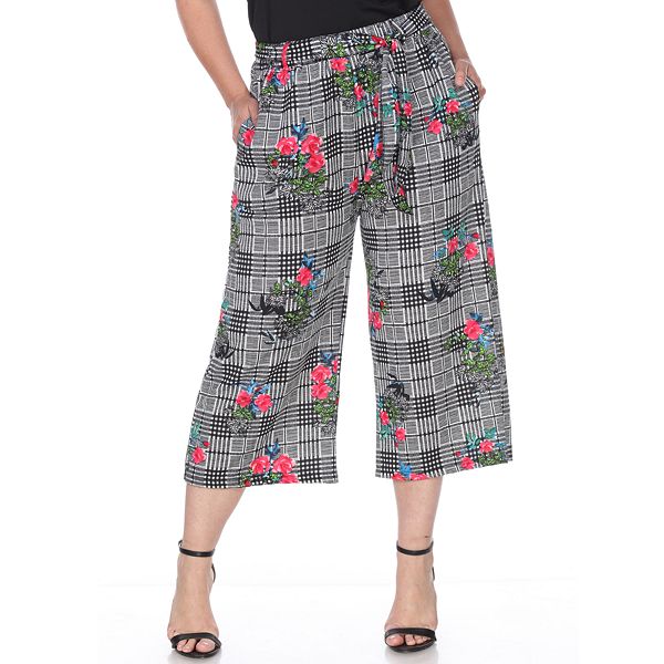 Plus Size White Mark Printed Gaucho Pants